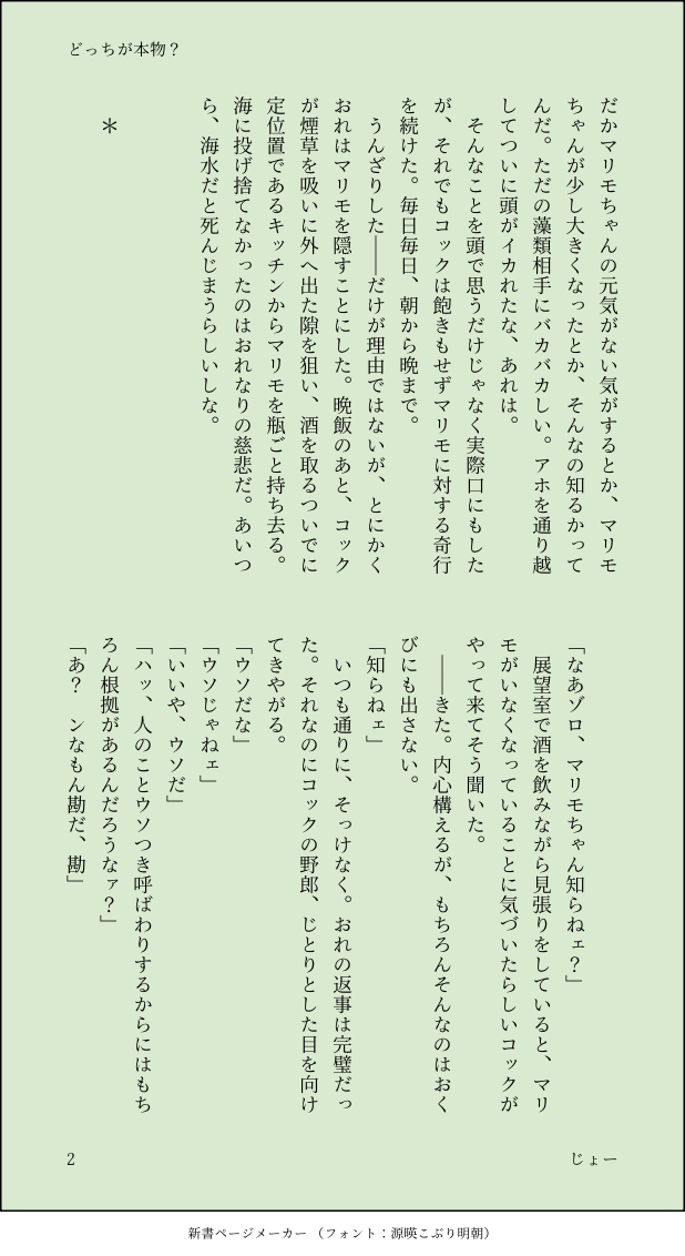 久しぶりにちゃんと完成させた話書けてスッキリ。